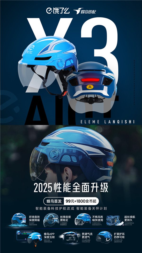 IT之家 7 月 25 日消息,饿了么官方今天宣布推出行业首款 AI 智能头盔 X3,在 AI 能力、效率和安全等方面全面升级,帮助骑手提升工作体验、送单安全和配送效率。官方表示,此次发布的智能头盔